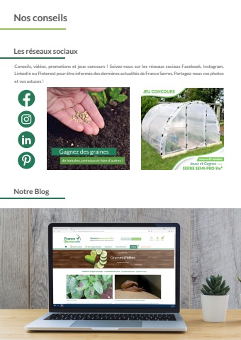 Notre BlogConseils, vid%u00e9os, promotions et jeux concours ! Suivez-nous sur les r%u00e9seaux sociaux Facebook, Instagram, LinkedIn ou Pinterest pour %u00eatre inform%u00e9s des derni%u00e8res actualit%u00e9s de France Serres. Partagez-nous vos photos et vos astuces ! Les r%u00e9seaux sociauxNos conseils